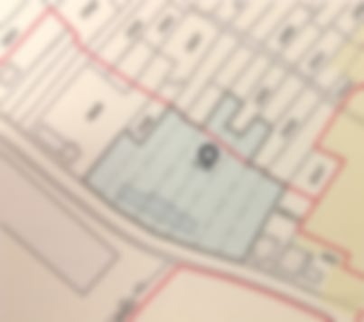 Ein Plan der Stadtwerke Ettlingen aus 1906[xv], hier ein Ausschnitt, zeigt die gleiche Geometrie des Grundstücks, wie sie heute aus dem Bodenrichtwertsystem „BORIS“ des Landes Baden-Württemberg abzulesen ist. Die acht streifenförmigen Teilflächen passen zu den acht Käufen Mayers 1846 und 1847. (Gestrichelte Linien vom Verfasser ergänzt)